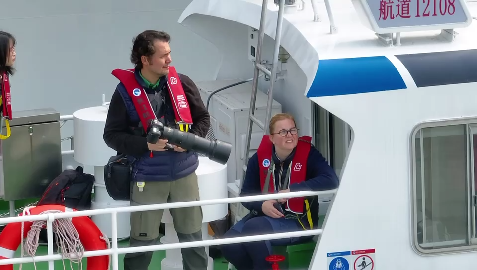 Accompanied by Jiang Meng, the secretary-general of the Nanjing Finless Porpoise and Aquatic Life Conservation Association, Jonas visited the "Yangtze Smiling Station" exhibition hall and the Yangtze Finless Porpoise Conservation Research Studio on October 28. Aboard a patrol boat, he searched for porpoises near Qianzhou Isle and Zhongshan Wharf. Near the main urban area of Nanjing, he observed porpoises poking their heads above the water, and mothers playing with their calves, while citizens cradled their children to watch the porpoises. He couldn't help but say "Bonjour" to the adorable creature. Speaking to reporters, he said that he was feeling very happy, also feeling very lucky. Not something that people can only see in a book or on TV, the species is something that they can really see and feel, really observe with their own eyes.
