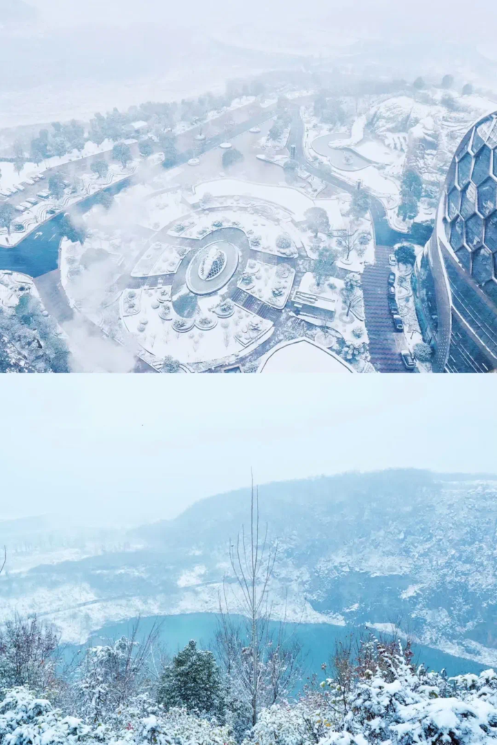 On a snowy day, while snowflakes softly melt into the spring water, the Laoshan mountain gradually dons a white coat. This mesmerizing contrast of warmth and winter chill creates a memory to treasure.