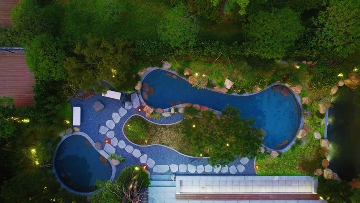 The bamboo groves offer an extra sense of privacy when you are in one of the 50 outdoor pools. In addition, there are various flower baths and herbal baths in creatively decorated panda pools, pumpkin pools, and beer pools to choose from.