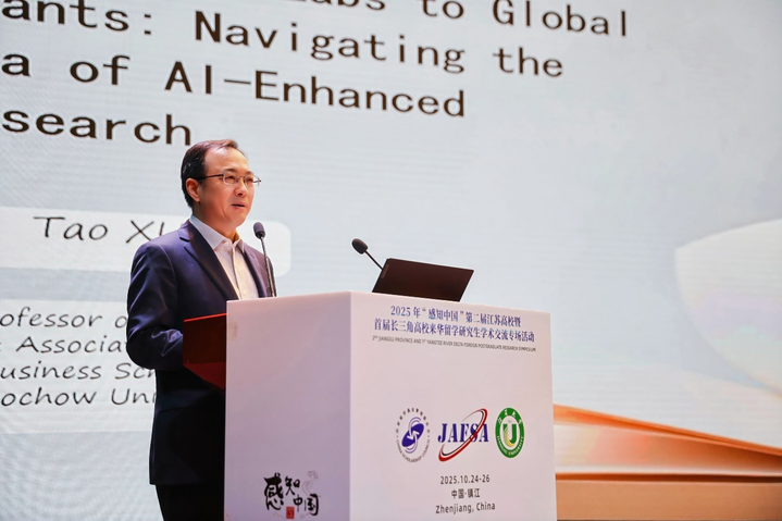 Hosted by the China Scholarship Council and organized by the Jiangsu Association for International Education and Jiangsu University, the 2025 “Experiencing China” 2nd Jiangsu Province and 1st Yangtze River Delta Foreign Postgraduate Research Symposium was successfully held at Jiangsu University from October 25 to 26, 2025.