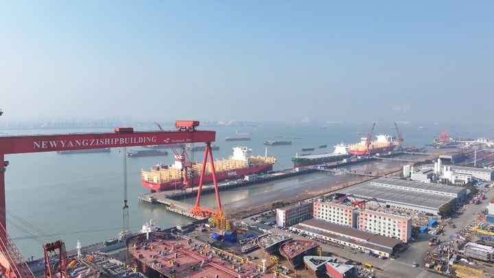 Jiangsu New Yangtze Shipbuilding Co., Ltd., located in Jingjiang County, is busy building nearly 20 ships. Yangtze River Shipbuilding Group is a private enterprise mainly engaged in shipbuilding and ocean engineering manufacturing, occupying an important position in the traditional fields of bulk carriers, oil tankers, and container ships. It is also the first private shipyard in China to enter the 170000 cubic meter LNG ship and ultra large liquefied gas ship market, with comprehensive strength firmly ranking among the top five in the global shipbuilding industry. At present, the company has received over 200 orders, ranking among the top in the world in terms of quantity.
