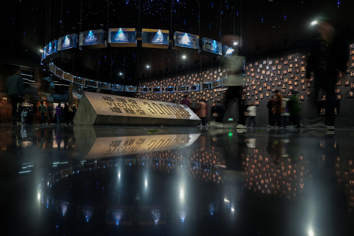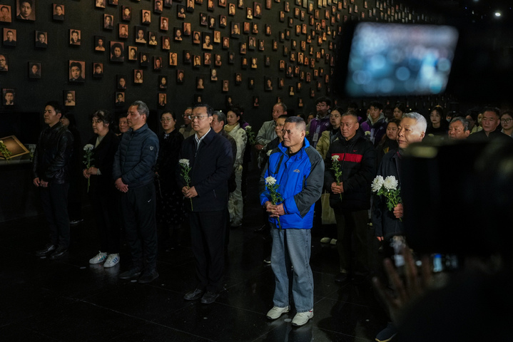 People attend a "lights out" mourning ceremony held at the Memorial Hall of the Victims in Nanjing Massacre by Japanese Invaders, in Nanjing, East China's Jiangsu province, March 11, 2025. [Photo/Xinhua]